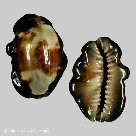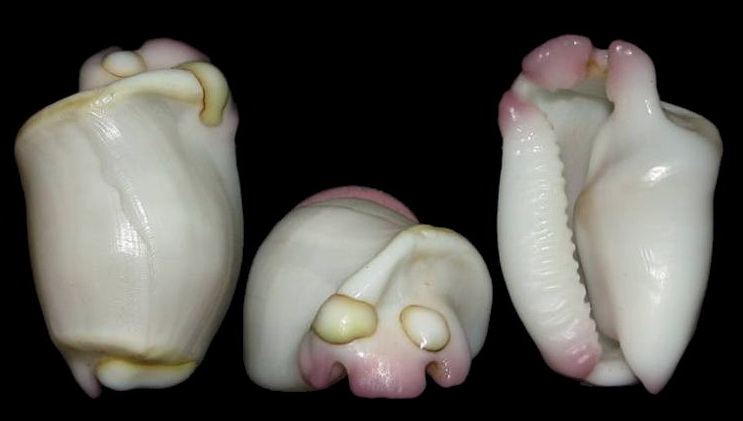 天生畸形的畸形貝(非受傷畸形)價格常常很貴,所謂"愛到卡慘死",收藏界總是有些熱愛此貝的收藏家競相收購 |