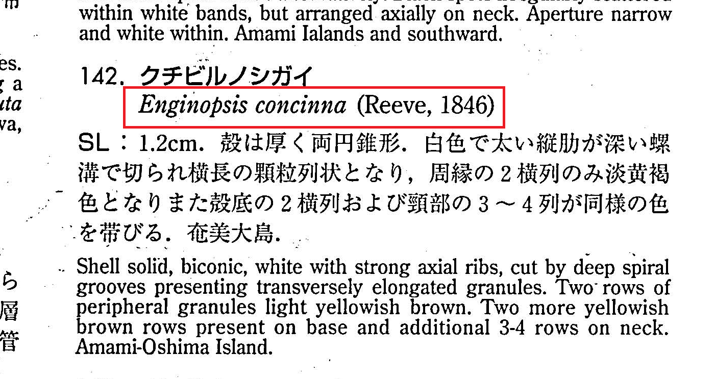 終於找到日本近海產貝類圖鑑,翻了一下峨螺篇,證實我先前的猜測,這個Enginopsis奇怪的屬名來自這本書沒錯。