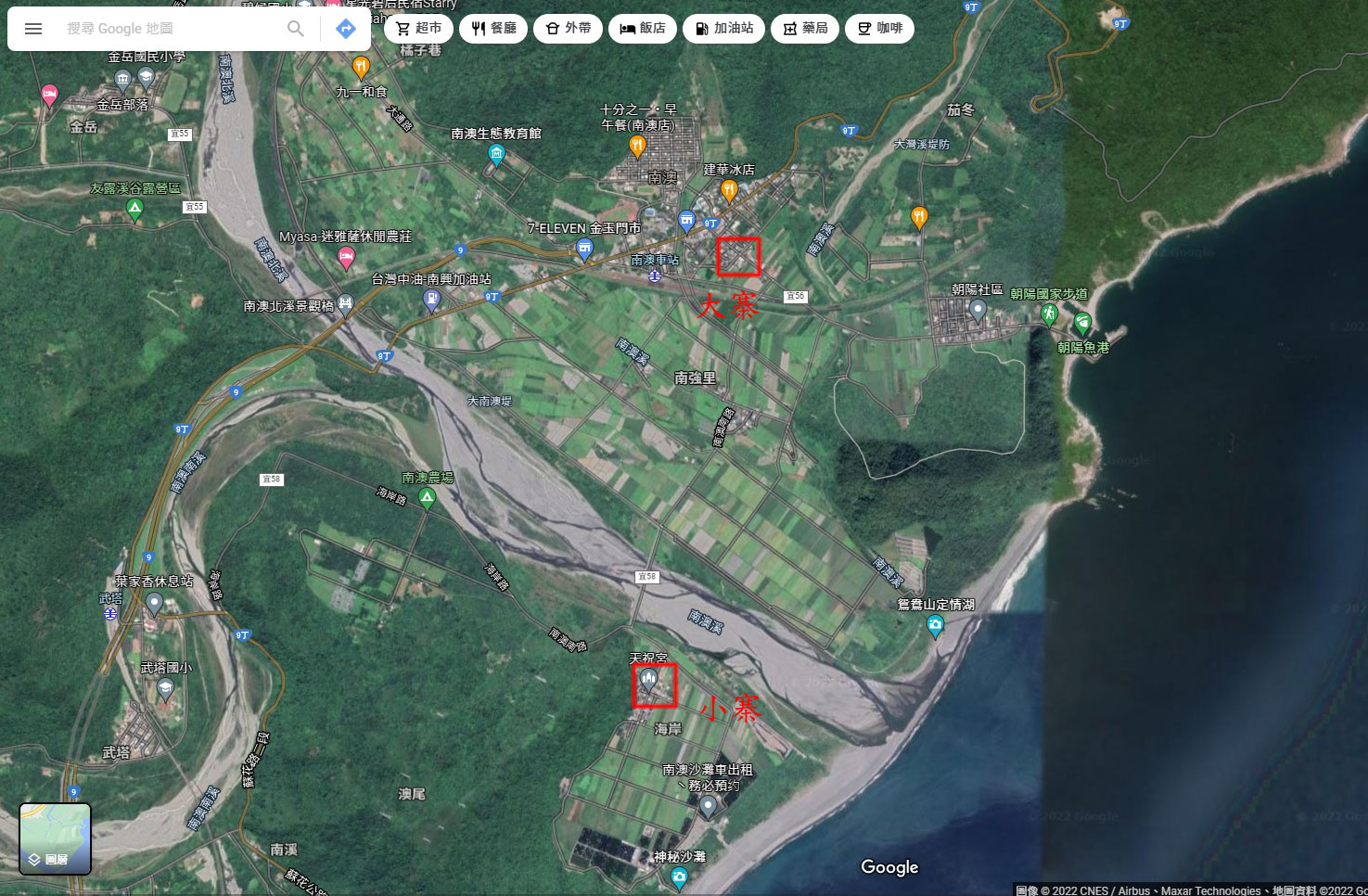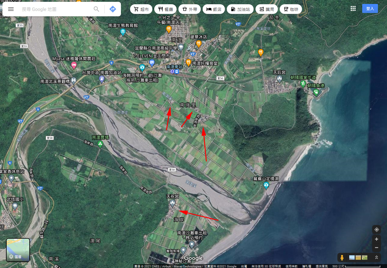 觀察南澳沖積平原上有3-4處獨立的村莊(如箭頭所示)很可能就是先前留下的墾荒聚落。