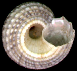 殼底圍繞臍孔的環肋是細肋,其他所有的近似Solariella,都是最粗的肋