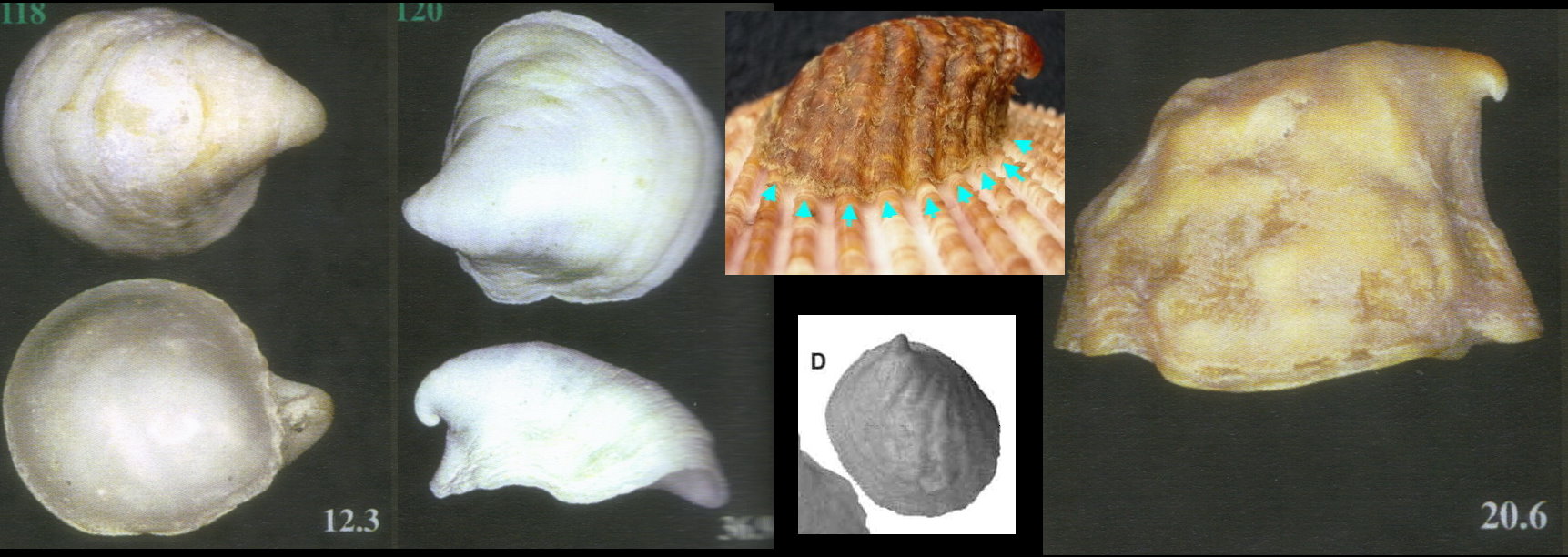 與毛螺同一科的偏蓋螺,也不用檢視外國標本,就列出底下7種殼(我只合成了5張)都是同一隻殼: