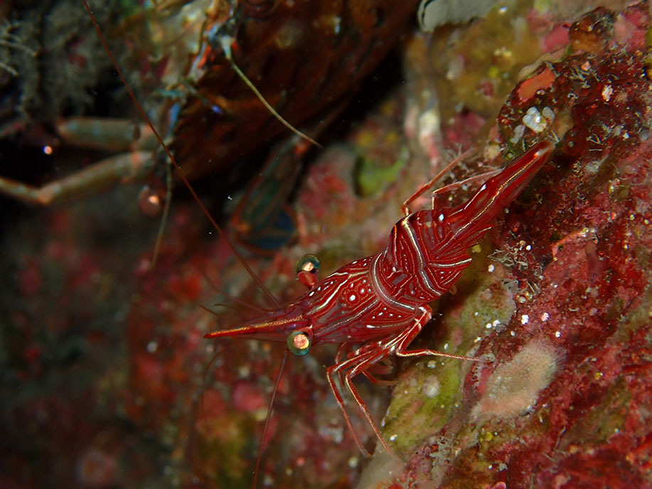 這隻乍看像油彩蠟膜蝦,其實是白斑拖蝦,又稱為安波托蝦 Thor amboinensis (de Man, 1888)