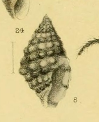 我想到了「山水寶螺」 Palmadusta diluculum diluculum與「清淨山水寶螺」Palmadusta diluculum virginalis。前者為褐色底配白色水狀紋,而後者為白色底配褐色水狀紋,剛好相反。
