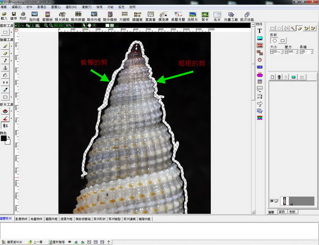 所以,貝殼去背照片的製作有兩個關鍵點: