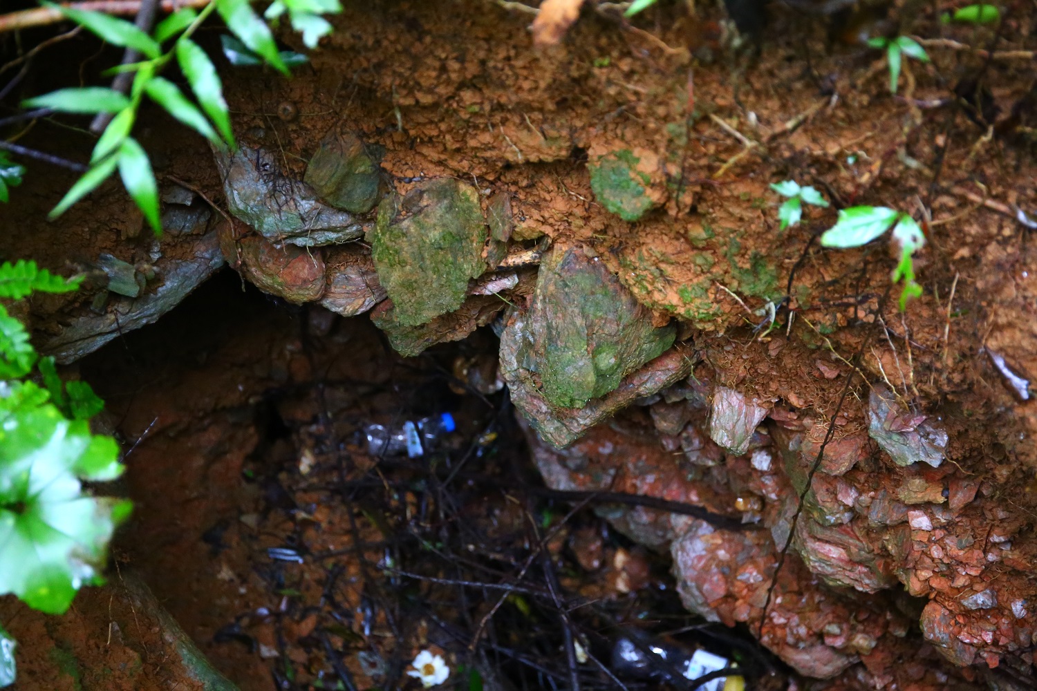 不過這裡地質不穩定更麻煩, 有些步道已陷落成坑洞, 要架木橋才能走過去, 而有些沒有公德心的遊客居然將垃圾丟入坑內