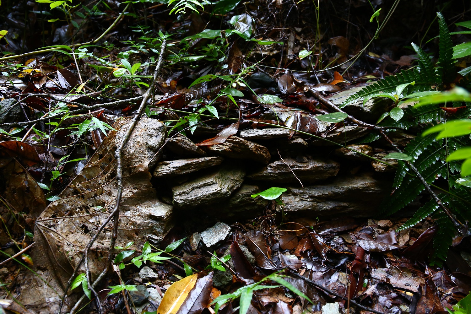再往前走, 看到一條用當地片麻岩築成的人造牆基結構及一些駁坎, 不過很難斷定是何時何人所堆砌。