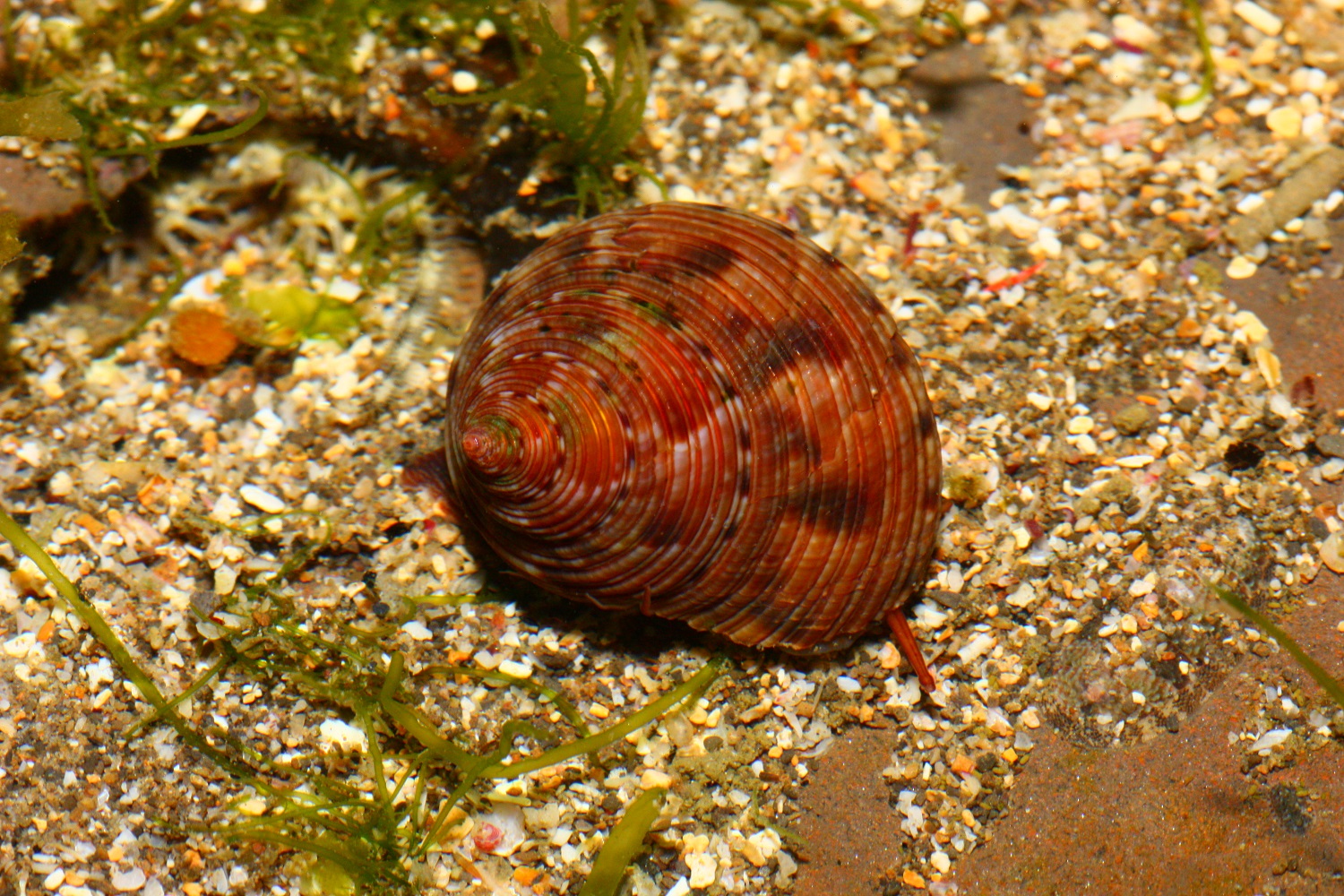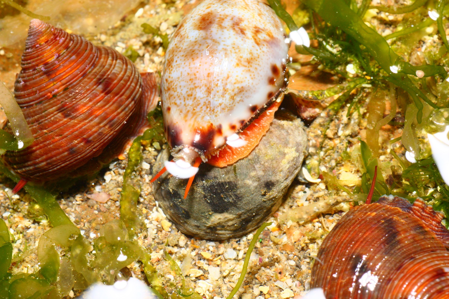 又發現一隻小眼寶螺, 兩隻腰帶鐘螺....., 吼,....群聚, 抓起來