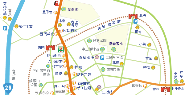 ¥»¦¸¦a¾_¶Ë¤`³ÌÄY­«ªº³Ã­Ñ¦æ, ¦ì©ó«í¬K¤¤¥¿¸ô»P·s¿³¸ô¥æ¤e¤fªþªñ(¦p¤U¹Ï²Ä¤@­Ó7-11), ­Ë¶ò­ì¦]¬O¸ËæC®É¥´±¼¤F¨â®Ú¬W¤l, ¾É­P¥|¼Ó³z¤Ñ­í¤ä¼µ¤O¤£¨¬, §¹¥þ­Ë¶ò, ªþªñ¤õ¨a¤]¤£Â_(³Æµù:¨©´ß©fªº®a¤]¦b·s¿³¸ô¡uÀé©[¡vªº«Ñ¤lùØ, Â÷²{³õ«Üªñ, ¨©´ß¤£ª¾·l¥¢¦p¦ó? ¦í¦b«í¬Kªþªñªº¨©¤Í¦³7,8­Ó, ¤£ª¾¬O§_³£¦w¦n?)