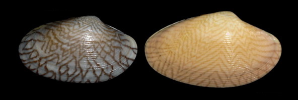 根據台灣貝類資料庫,台灣的橫簾蛤(Paphia屬)共有六種,在市場最常見的應該是波紋橫簾蛤,但是型態變化真的很大,我也不能確定是同一種。這兩個看起來可能都是波紋橫簾蛤,但是體型和顏色都有差,上面的很花俏,          下面這個肥的不得了。