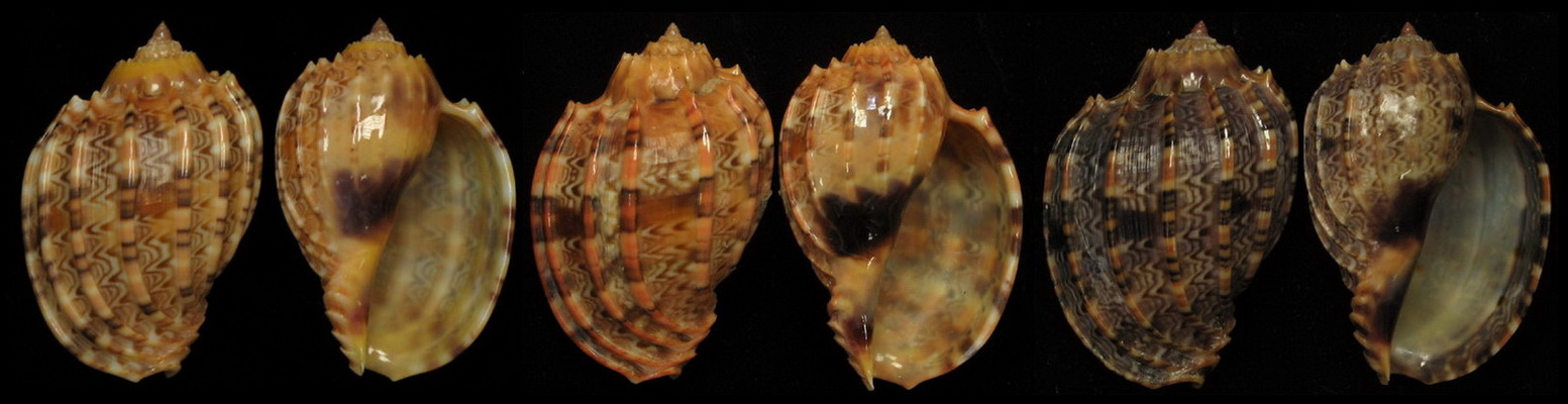 天生白化的殼,也有像正常殼完全一樣,例如Homalocantha scorpio之深色,橘色與白化(打開Hardy網頁,銀杏螺白化好像是蠻普通的).