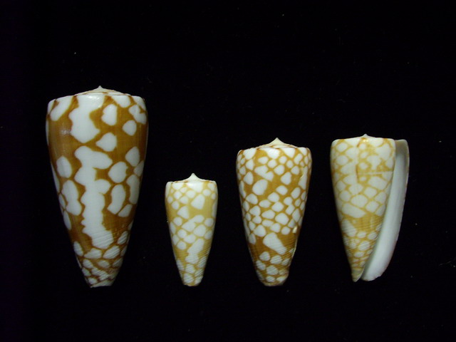 姑且就以訛傳訛用以下這類常見標本當作高貴芋螺的代表了